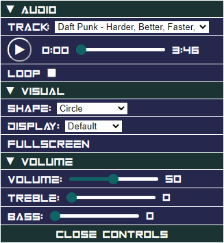 3D Visualizer is a web program that uses data sampled from an audio file to draw a 3D-looking shape on the screen.