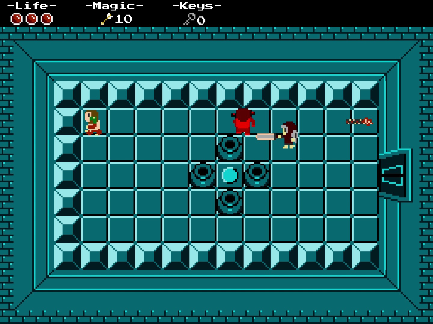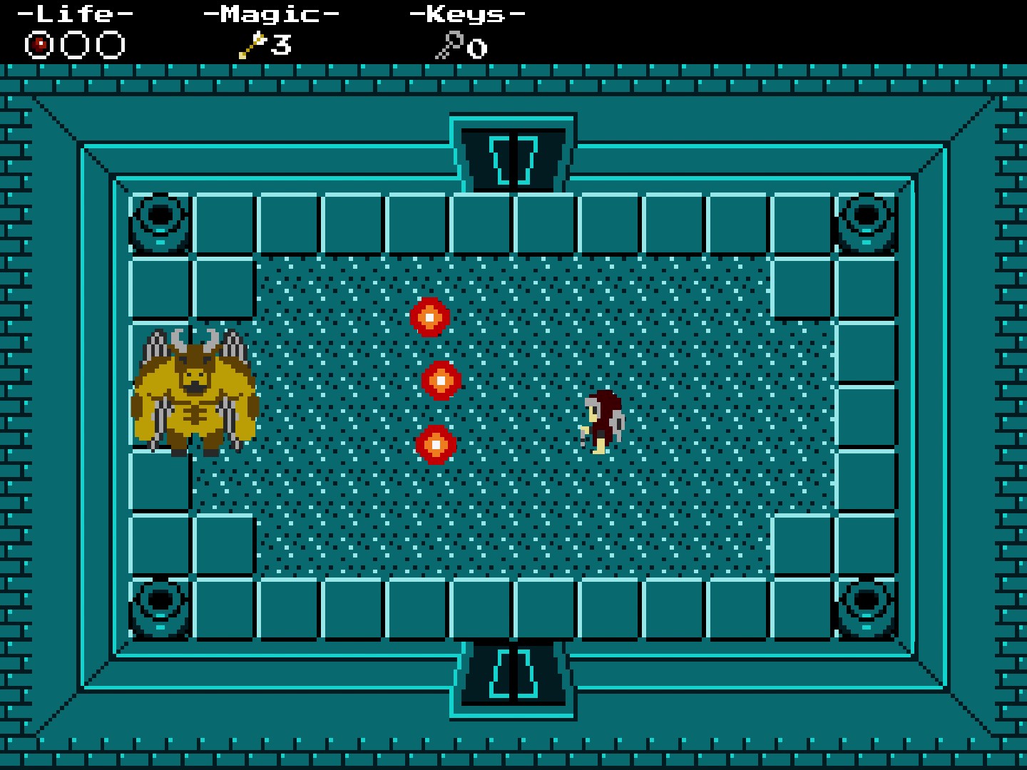 After unlocking the final door, the player must defeat a boss to reach the end of the dungeon.