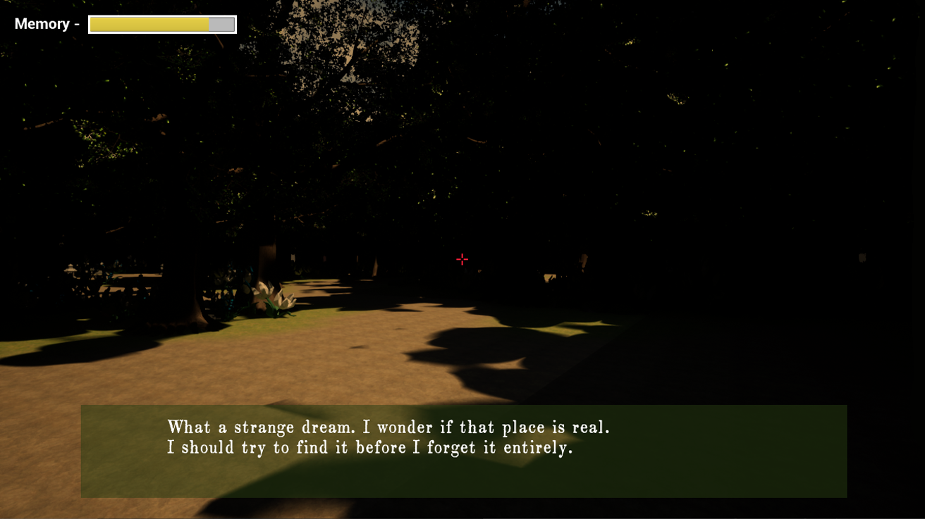 In the project, I focused on implementing the player, including basic movement, the memory and photographing mechanics, and implementing audio.