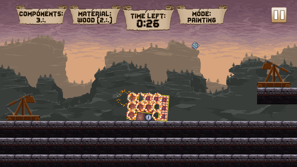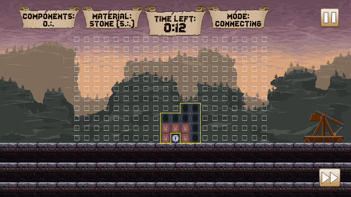 The player starts each level with a certain amount of components they can use to build blocks, with each material being strong or weak against different enemy projectiles.