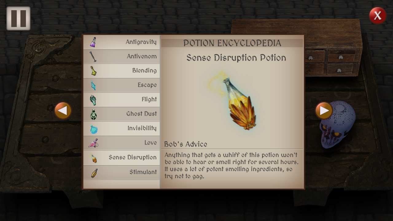 For each level, the player will be given a mission that requires them to make a certain potion.