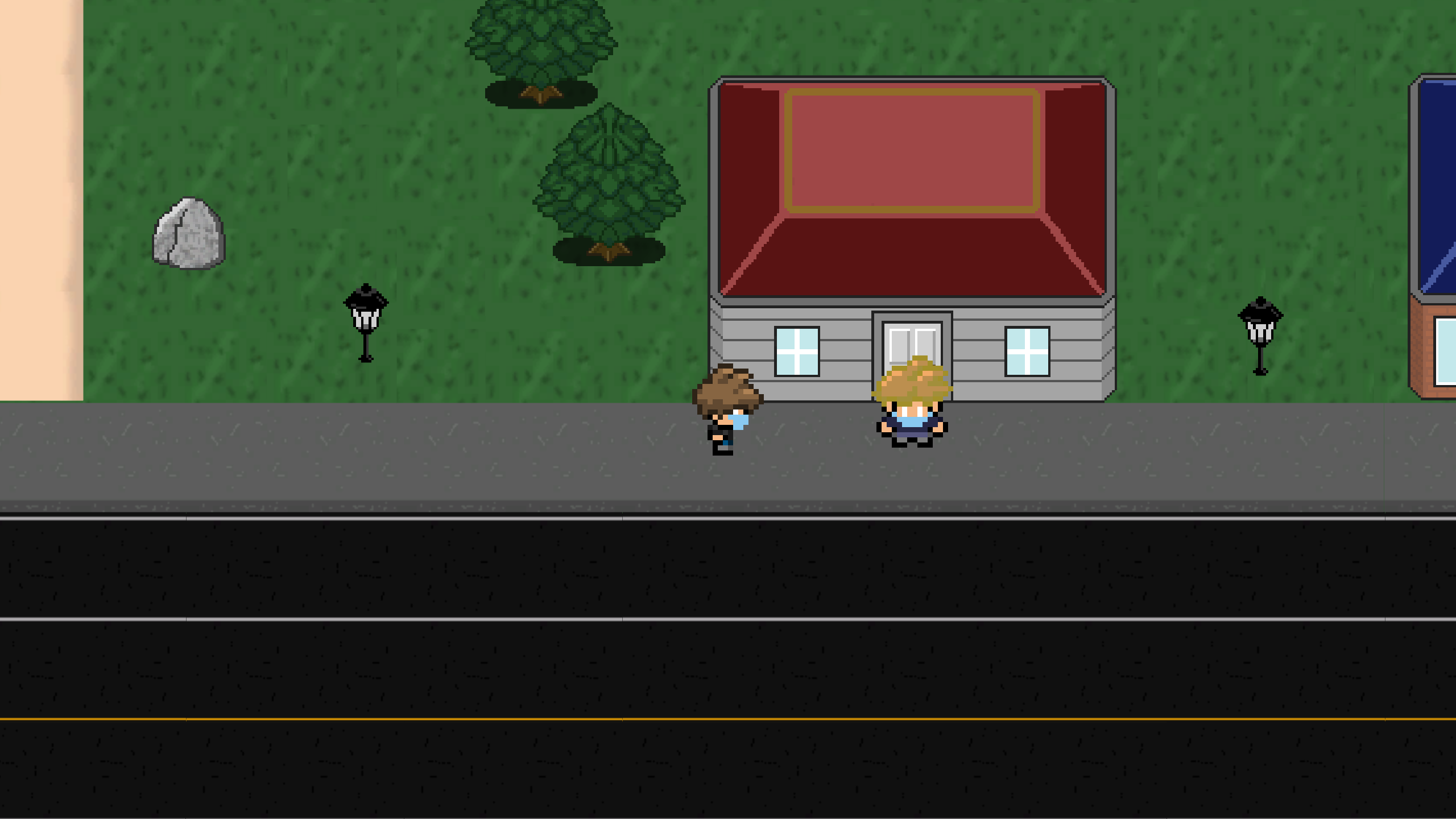 After this change, I worked on drawing pixel sprites for the game's objects, including things like buildings, lamps, rocks, and foliage.
